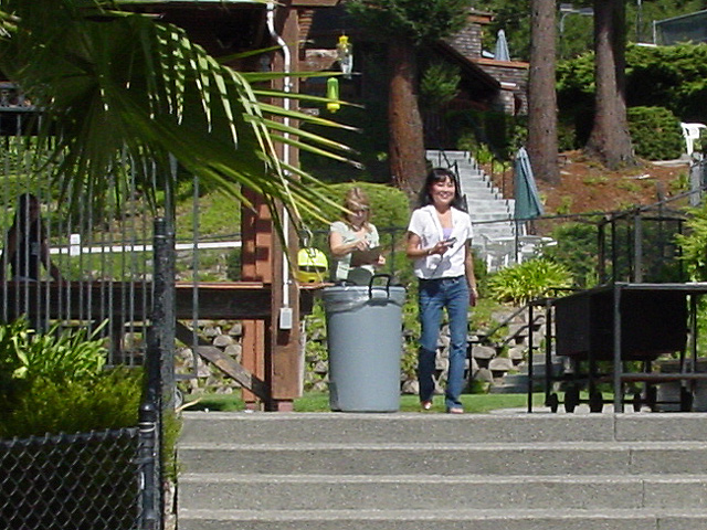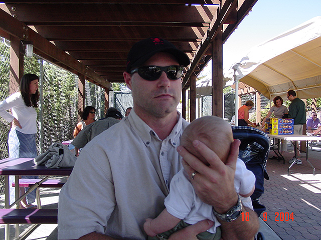 Wikiup Tennis Club Pat Hunter and Dave Heidi and Hunter Hunter showing how tall he is. Free throw competition