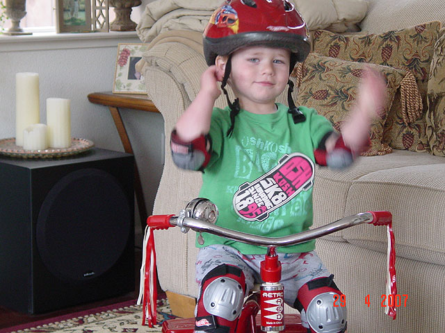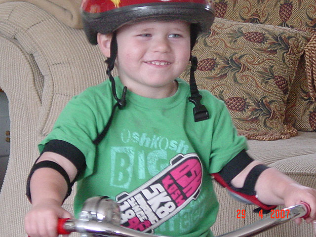 Hunter wants to go for a ride outside. Hunter all ready -- knee pads, elbow pads and all!. Hunter Hunter shows his elbow pads. Hunter Hunter