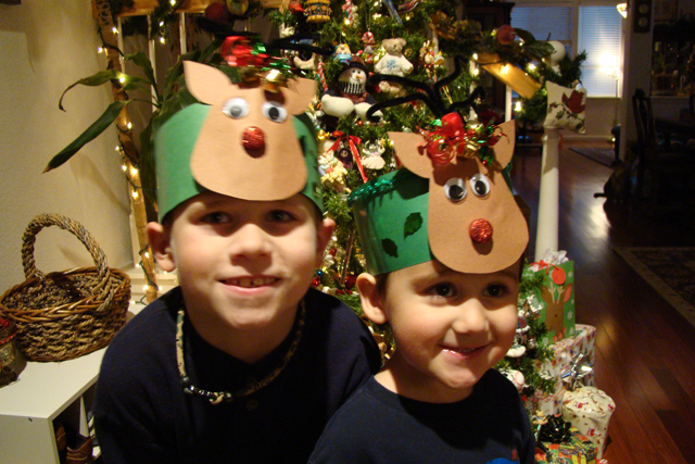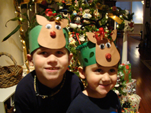 December 14, 2011Hunter and Ryder wearing their Reindeer hats. (Hunter made his and mom helped Ryder with one) Click any image for larger view. ![]() ![]() |