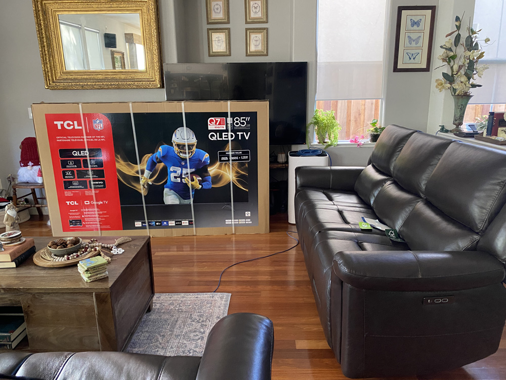 New Couches, December 2025We have had our old couches for many years, so we took advantage of Costco's sale and got two new couches with power recliners and headrests. We threw in a new TV, and now we have a whole new livingroom! We moved our old leather love seat in the front room, which looks much better than the really old fabric love seat we had there that I have been trying to get rid of for years!