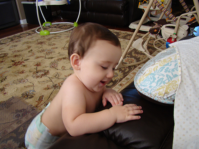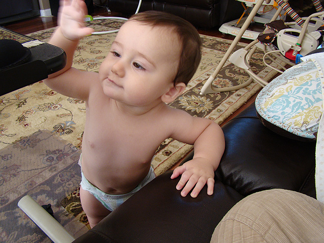 Ryder stands on his own all the time now. He is all over the place!