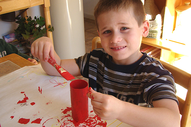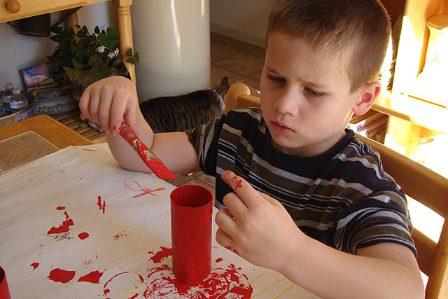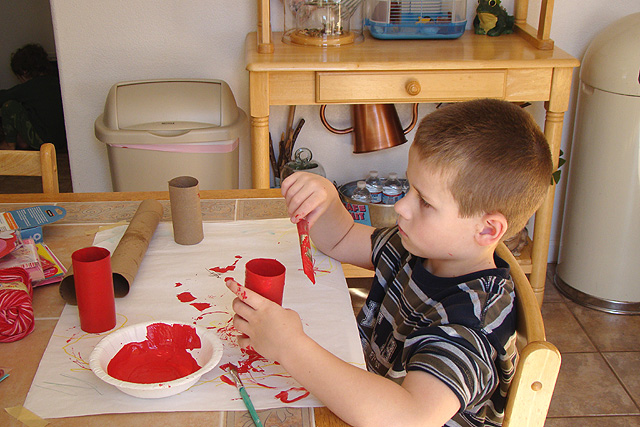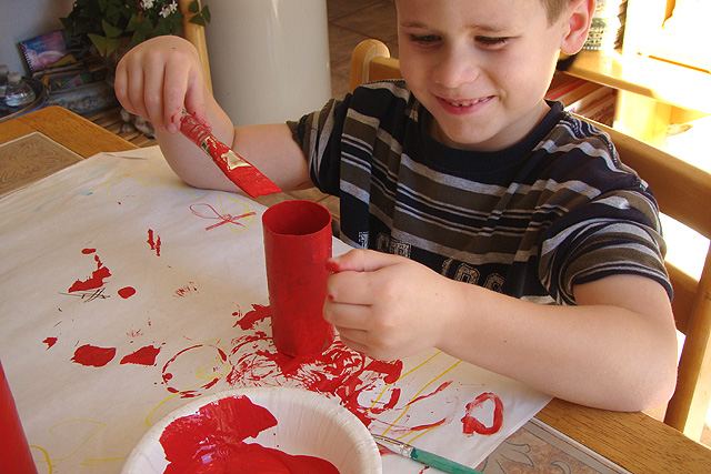 Hunter working on some Valentine's Day projects.