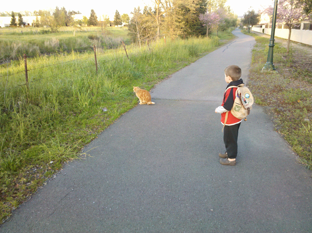 April 11, 2011Hunter exploring the creek trail by our house. Click any image for larger view.