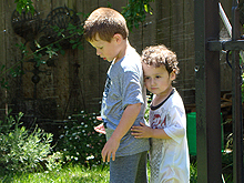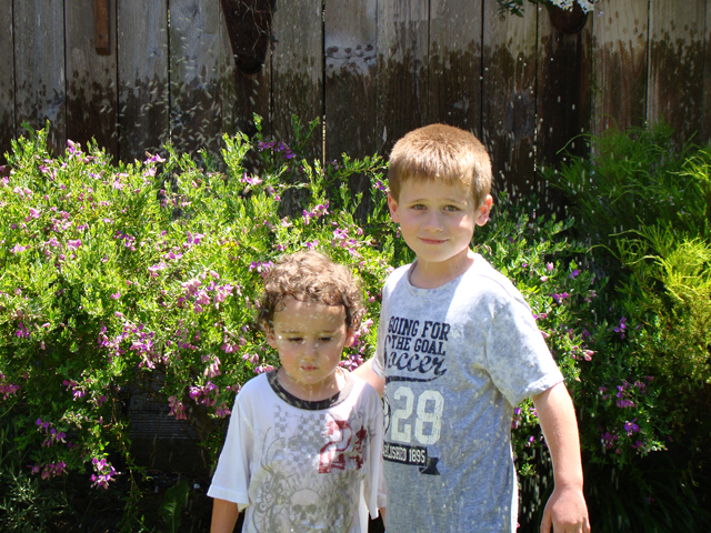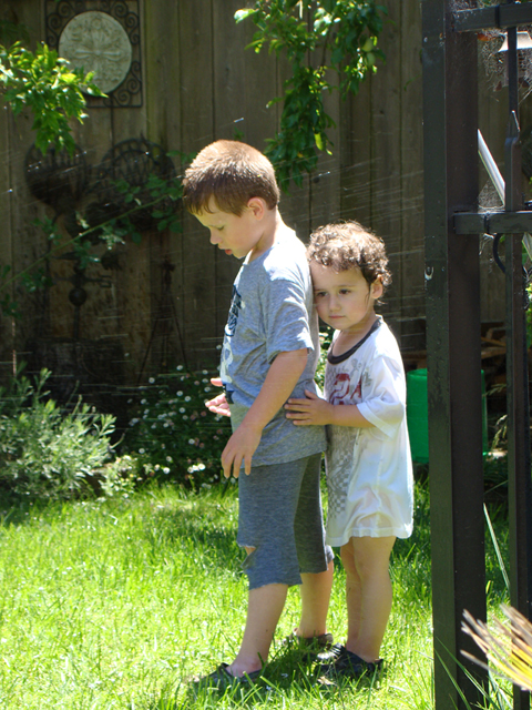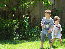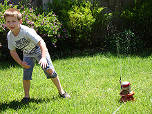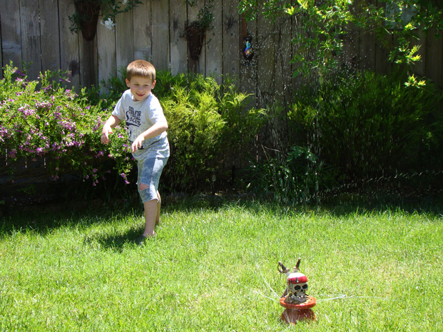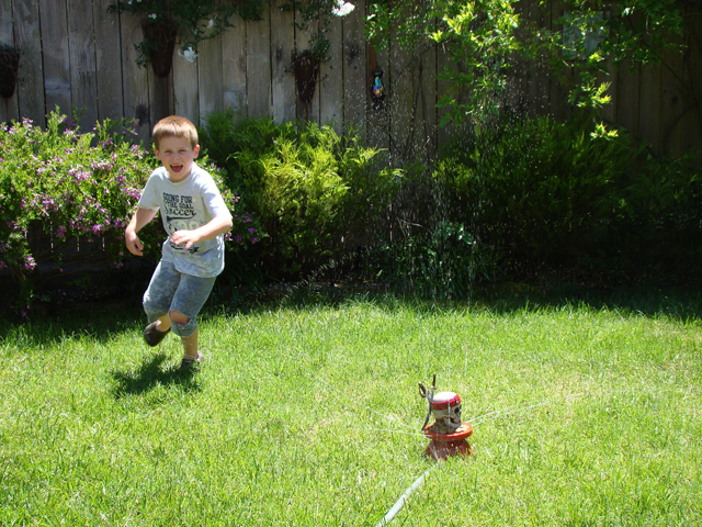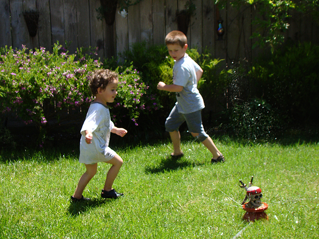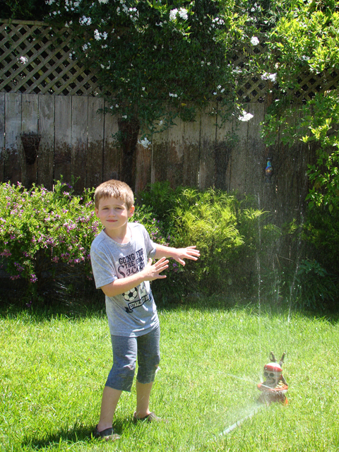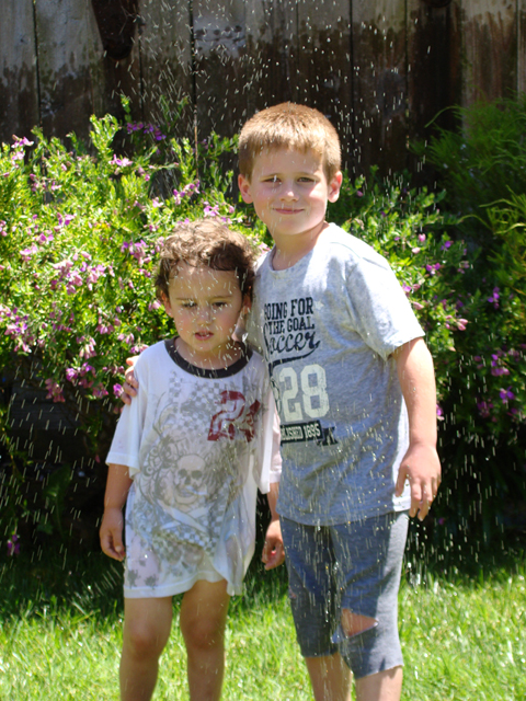 June 15, 2011Hunter playing in the sprinkler with Ryder. Click any image for larger view.