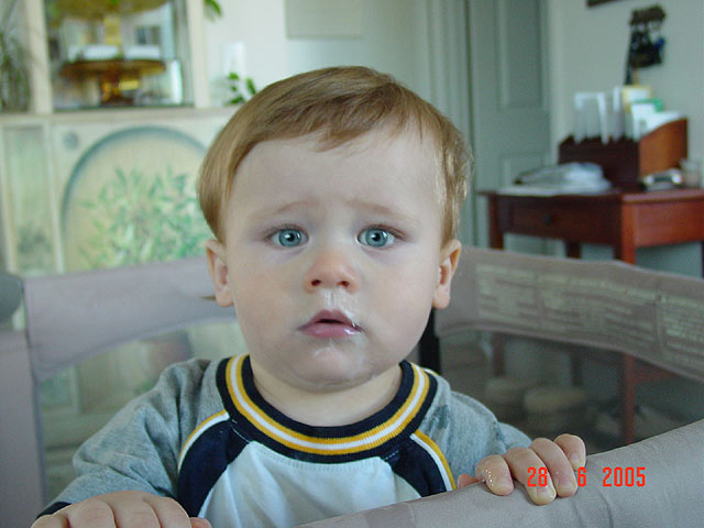 June 28, 2005Hunter can be pretty messy. Lately, he likes to splash his milk in his face... Click any image for larger view.