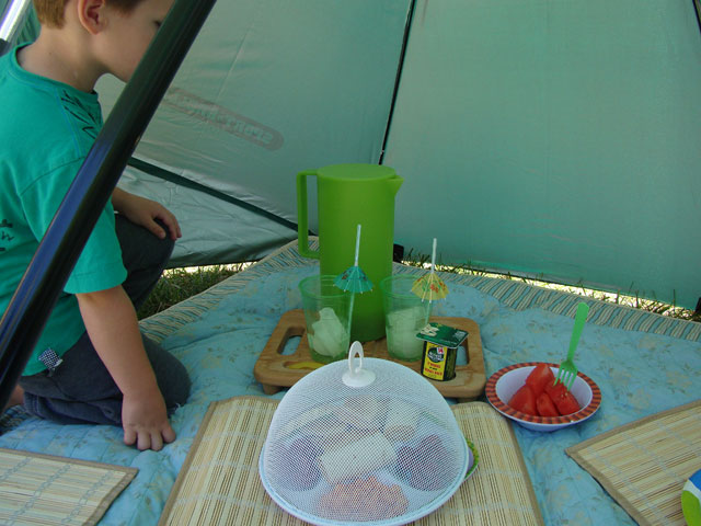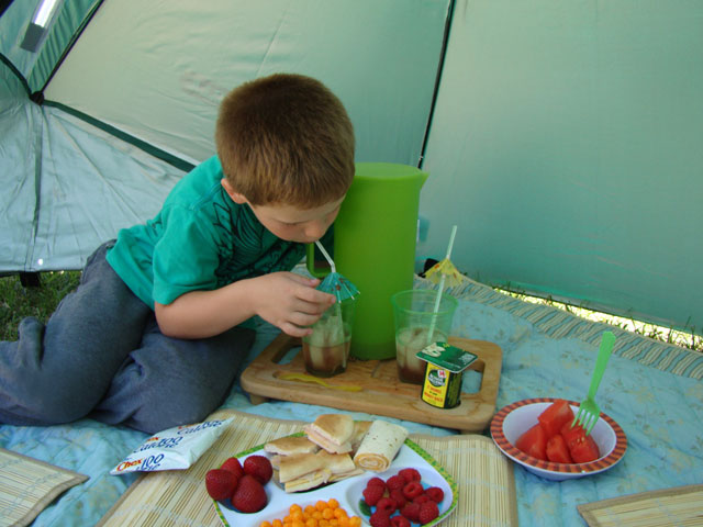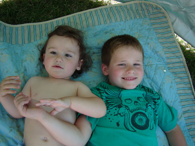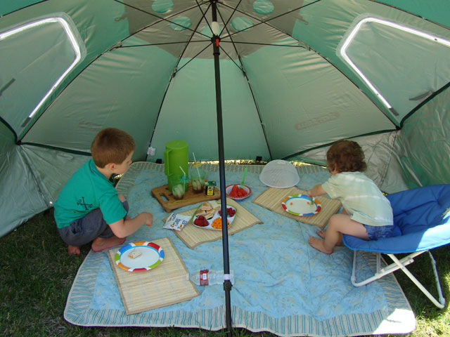 June 29, 2010Heidi and the boys tested out the new sports umbrella by having a little picnic in the back yard. Click any image for larger view.