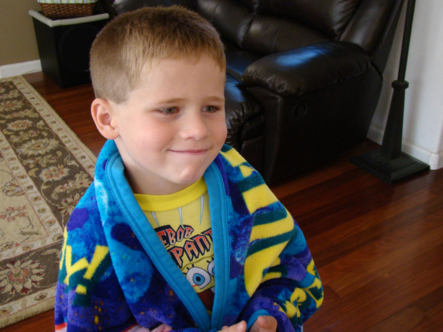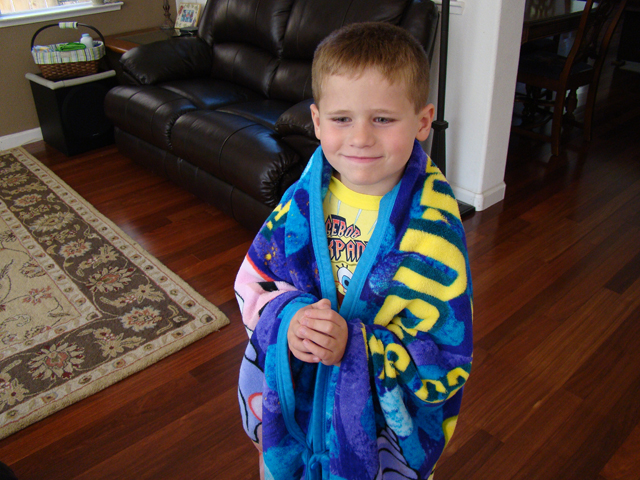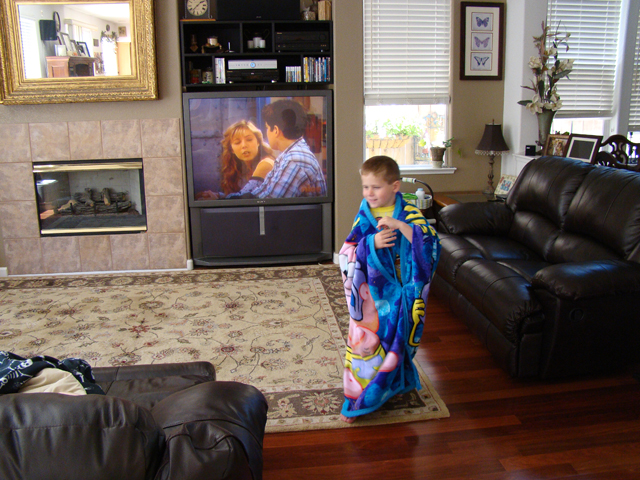 Hunter trying out his new SpongeBob slanket! He is ready for the cold weather now.
