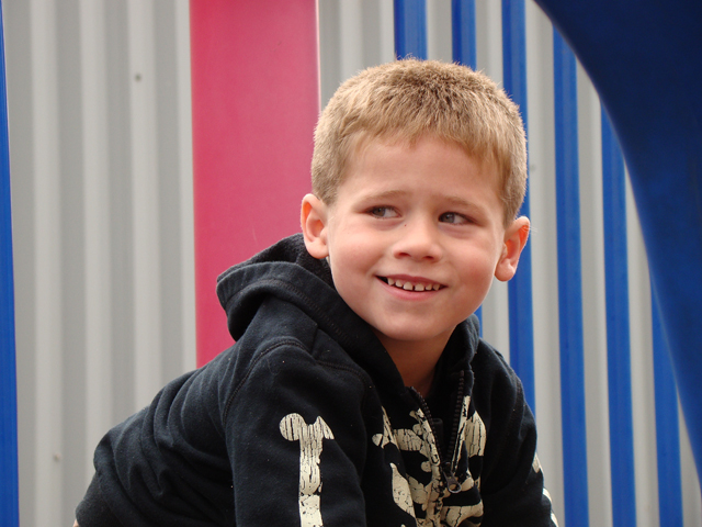 Hunter playing with Ryder at the Petaluma Village Outlets play area.