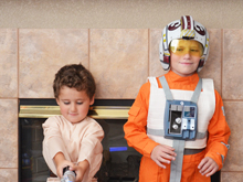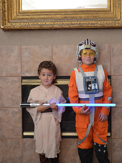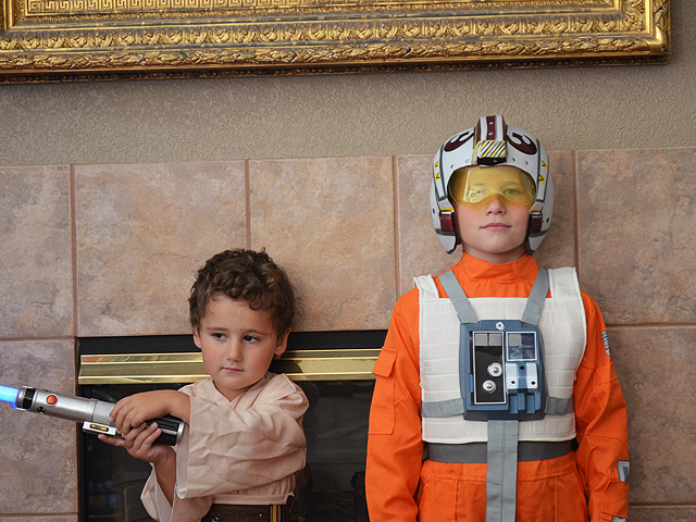 October 16, 2012The boys tried on their Halloween costumes today. Hunter is an X-Wing Fighter Pilot. Click any image for larger view.
