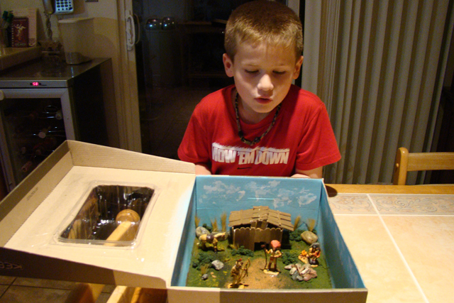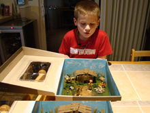 November 6, 2011Hunter with his 2nd Grade social studies project -- a diorama on the Yurok Tribe. Click any image for larger view.