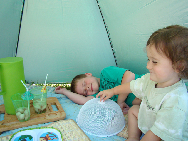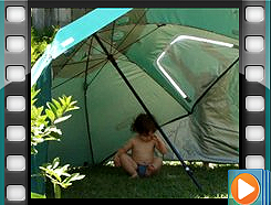 Heidi and the boys tested out the new sports umbrella by having a little picnic in the back yard. Click image to play.