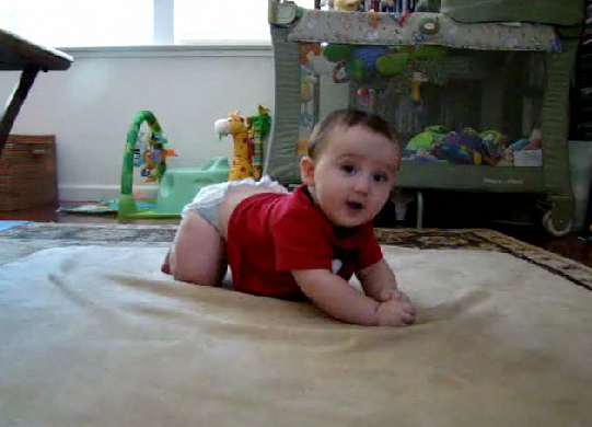 Ryder practicing his crawling stance.