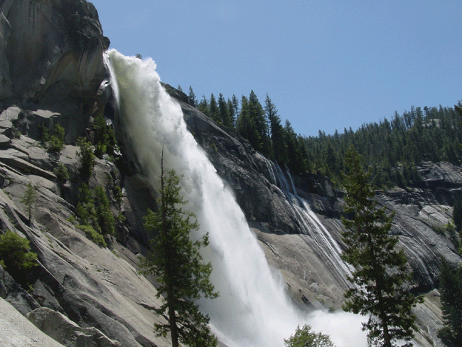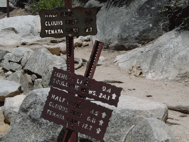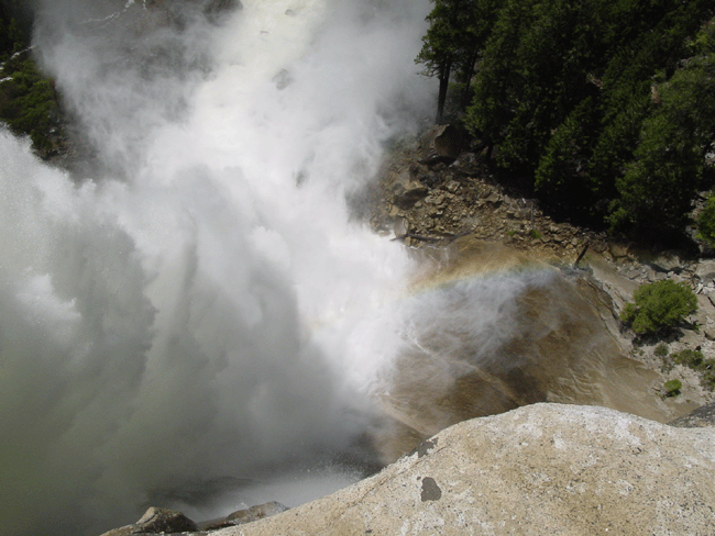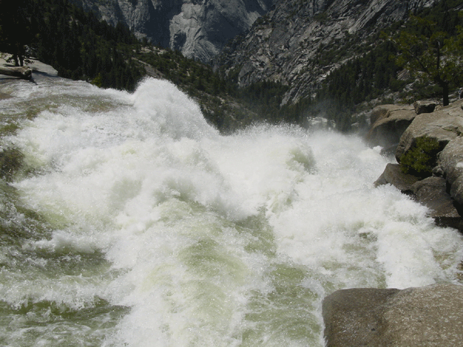 Trail sings on the way to Nevada Falls. Heidi hiking. Still goin'! Heid near the top of Nevada Falls Almost at the top... Wild waters from Nevada Falls Heidi takes a lunch break. Dave at the top... Heidi at the top... Heidi and Dave at the top of Nevada Falls Some serious mist... Views from Nevada Falls trail.