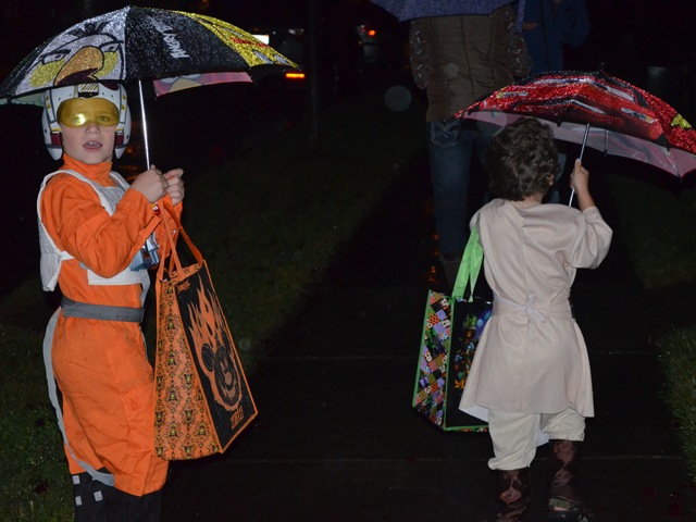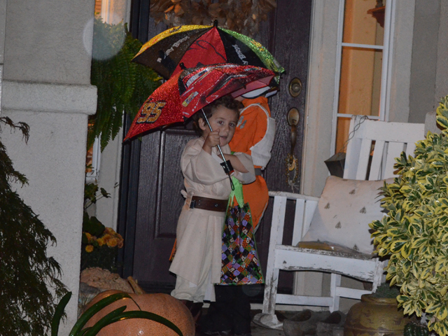 October 31, 2012The rain put a damper on things, but the boys still have fun trick-or-treating Halloween night! Click any image for larger view.