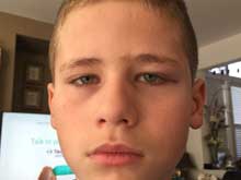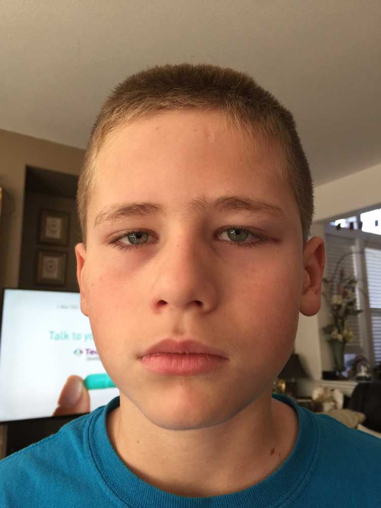 Hunter had a friend over today and they were playing in his room with Ryder. He and Ryder were wrestling while Ryder was holding a multi-use pocket tool he picked up in Hunter's room. He tried to get away from Hunter, and tagged him right by his eye with the tool -- that had a tiny hammer on the end of it! Good thing it missed his eye!