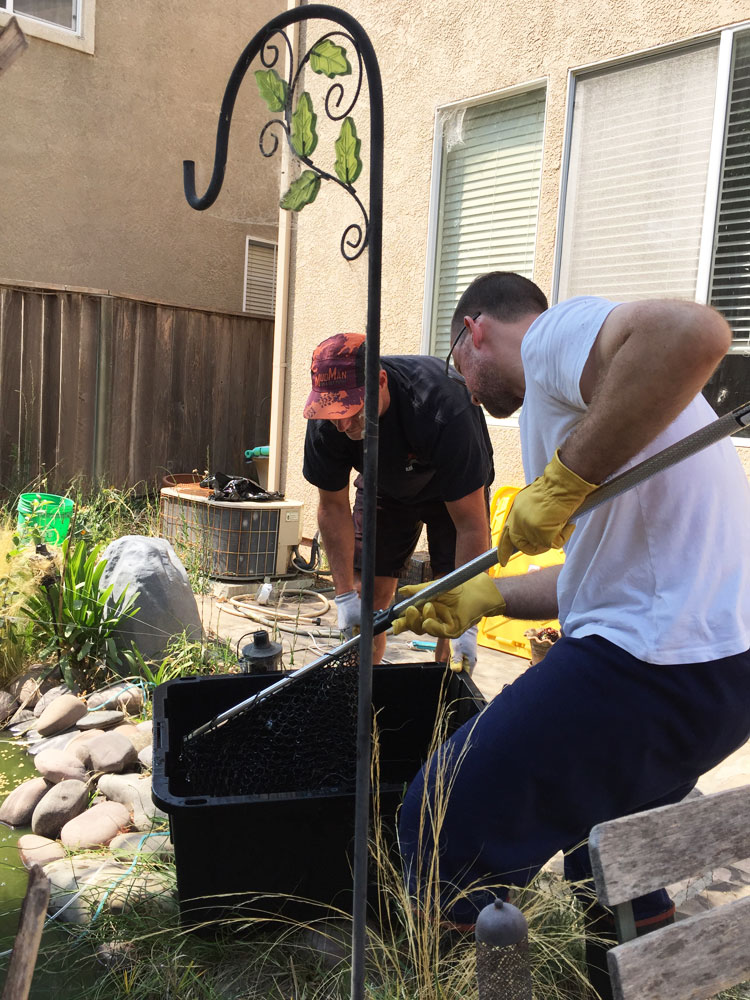 My mom has decided it's too much trouble to try to fight off the raccoons and birds looking for a meal in her pond. She removed the remaining koi and will drain it. Fortunately, we have room in our pond to give them a new home! The biggest, Hellboy, is having a wonderful time with all the new space!
