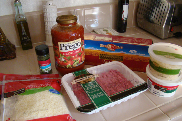 We recently had dinner at a friend's house and she made a great homemade lasagna. Both Hunter and Ryder loved it too. It is never easy to find a dinner all of us can enjoy together, so we decided to find a good recipe for easy lasagna. We found this recipe on Food.com. We already had a box of lasagna noodles and some of the other ingredients, so we ran to Target for the few missing items. They were out of fresh parsley, so we substituted dried parsley. It came out really well and Hunter even had a second helping!