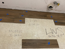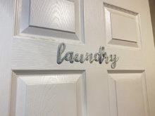 Our laundry room was quite a mess. We finally decided to do ceramic tile over the linoleum and paint. We painted the room a very light gray and used wood plank ceramic tile on the floor. It looks so much cleaner! Later we added a laundry counter and now it's perfect!