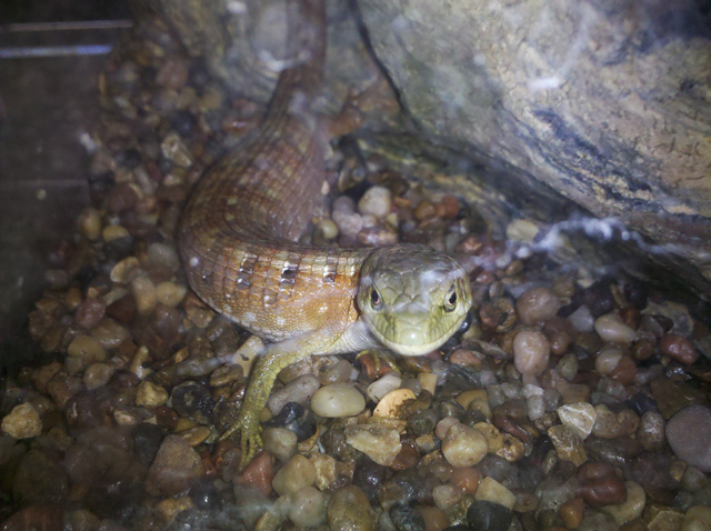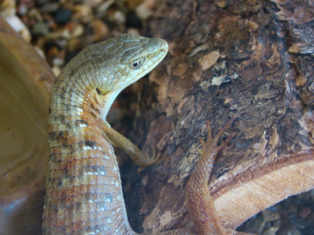 July 10, 2011Millie is a California Alligator Lizard. We found her in our back yard and she is over 8 inches long. February 24, 2017: Millie passed away after almost 7 years. She was well taken care of happy eating crickets and worms -- while watching us in the kitchen every day.