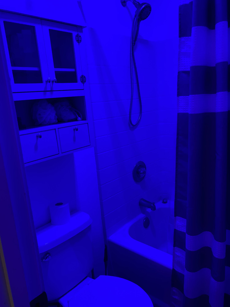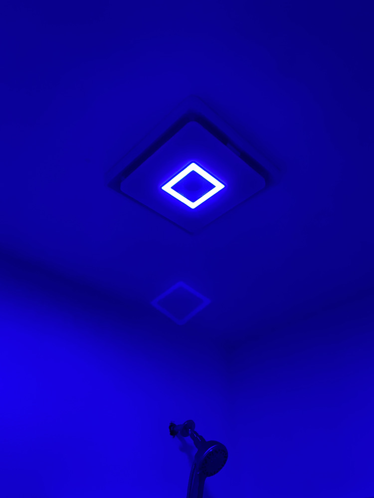 New Bathroom Fan w/ Bluetooth SpeakerJanuary 2025The boys bathroom was painted blue and decorated with monkeys when they were little and was super cute, but it really needed an update. The monkey decor was removed a long time ago, and we painted the cabinets, but we decided to paint the small toilet area white to make it feel brighter. That area was also starting to get spots of mold on the ceiling because the old fan was not working well, and they take very long, hot showers! We had Lowe's mix in a mold block with the paint, and also picked up this awesome fan with 2 night light colors and a Bluetooth speaker! We added some new accessories, like this toilet paper holder with a shelf, and we will be adding several more things to update it. It is so much nicer and looks so clean and bright! UPDATE: We finally finished painting the main part of the bathroom too! Click any image for larger view.