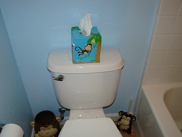 We just got finished changing the guest bathroom to the kid's bathroom. Today, Dave painted and it turned out great! Click any image for larger view.