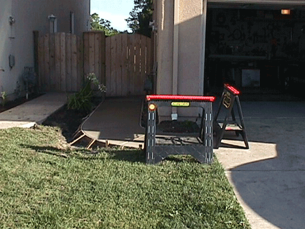 Before the sidewalk. New sidewalk. Sidewalk in front. Nothin' but dirt! Getting ready for the patio. Framing the patio. Still preparing! Ready for flagstone. Square flagstone for the step. Layout for the stone on the step. New step. Looking good!