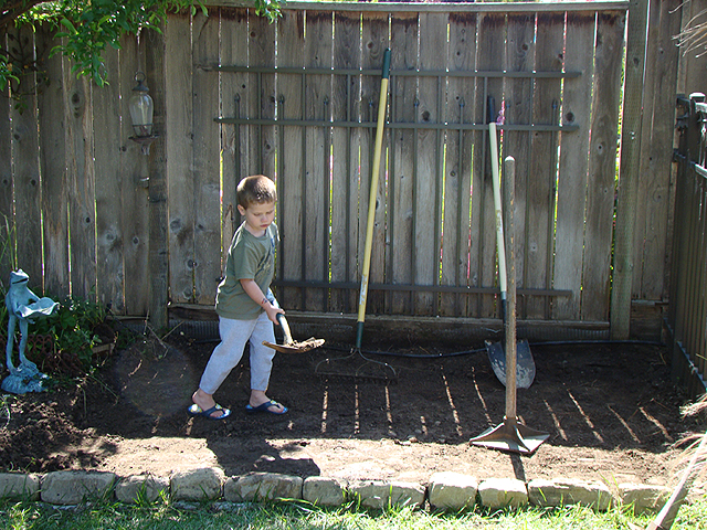 June 6, 2009We are making a framed in play area in the backyard that will be filled with playground material so it is safe to play in. Hunter's new climbing rock will go here. Click any image for larger view.