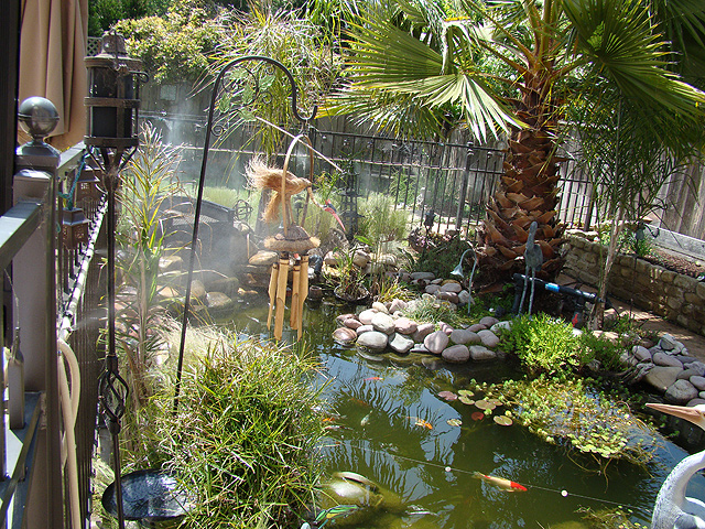 Our Bullfrog enjoying the spring weather. Big palm tree Tasha Lots of fish! Pond at night. Fish and turtles Fish and turtles waterfall pond being misted