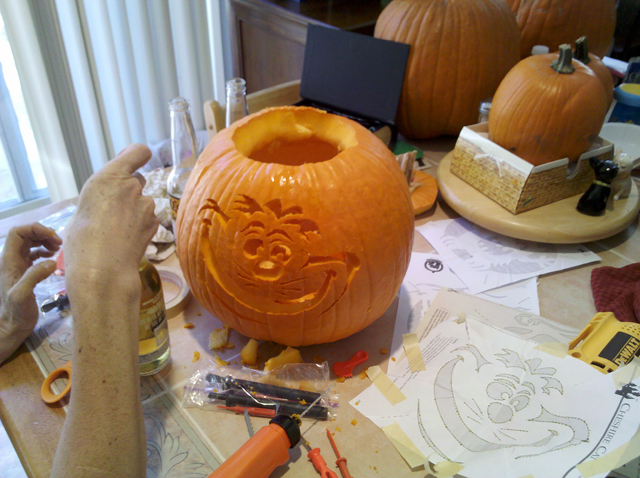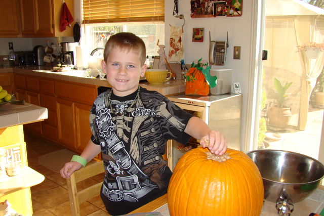 October 30, 2010We've carved 6 pumpkins this year! Hunter carved his first Jack-o-lantern by himself. Click any image for larger view.