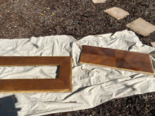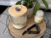 I wanted a new sofa table, but couldn't find anything I liked. I decided to try to refinish the table we had and used some chicken wire to give it a farmhouse look. As I've done with other pieces I've refinished, I first painted the table dark brown with old spray paint, then painted it a light gray chalk paint. I used sandpaper to distress it, and stapled chicken wire under the glass insert so it looked more rustic. I also had a round wooden and metal tray from the Target dollar section that was white with light wood. I ended up spray painting it and staining it a little darker and it looks so cute on this table now.