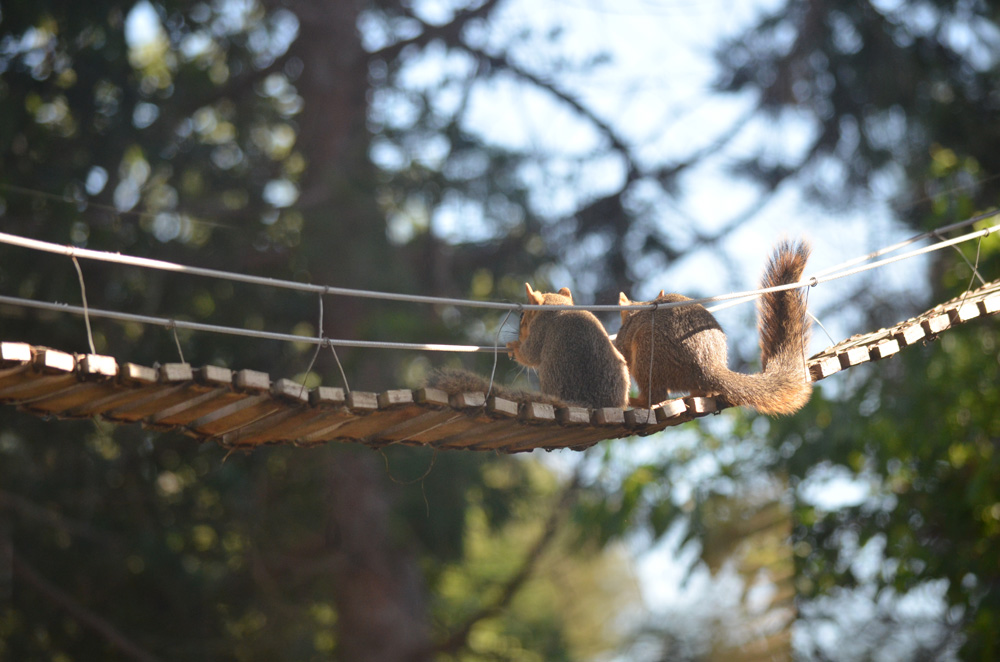 Squirrels, Spring 2024The squirrel family in has been living in our backyard palm tree for several years now. They love their squirrel bridge!